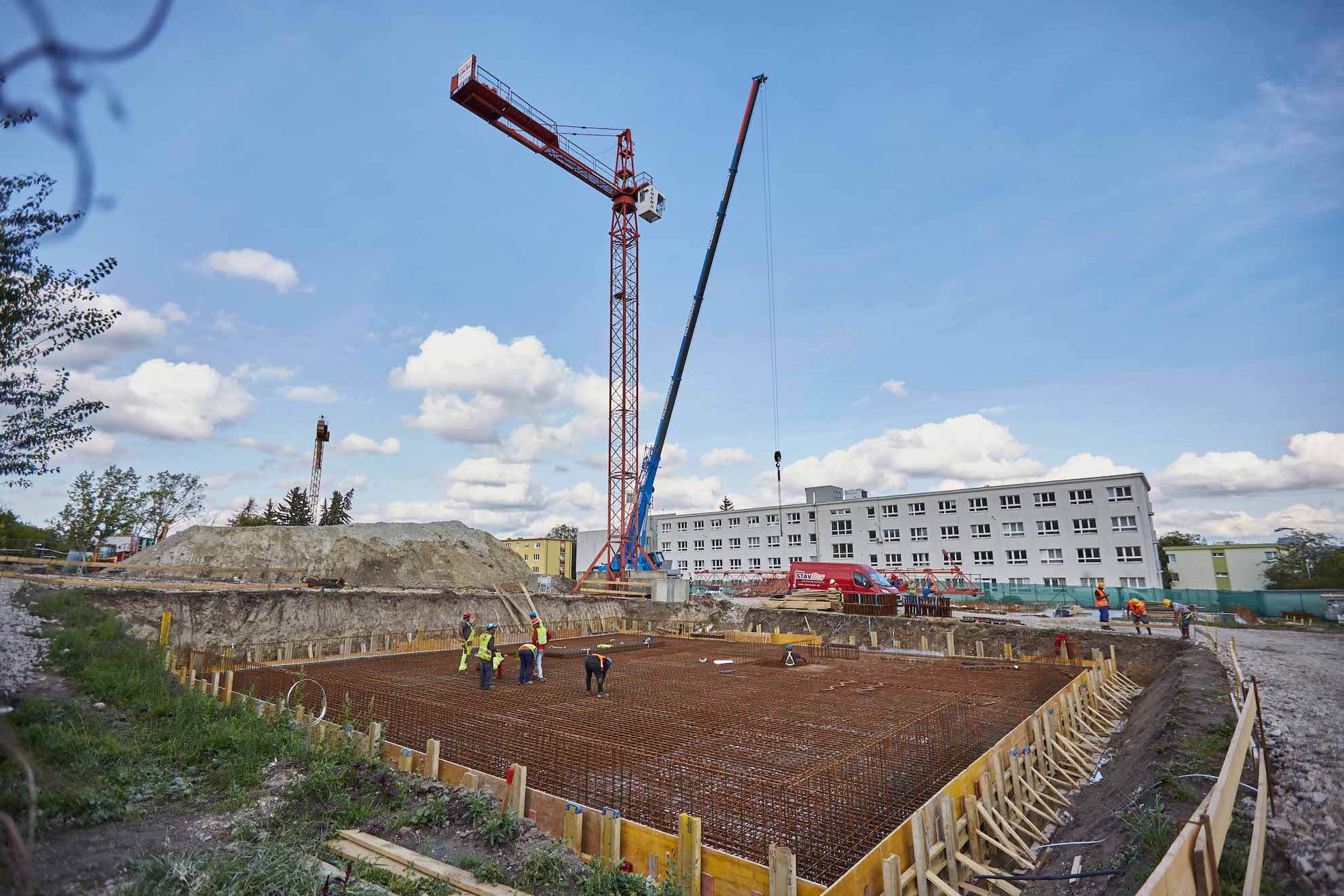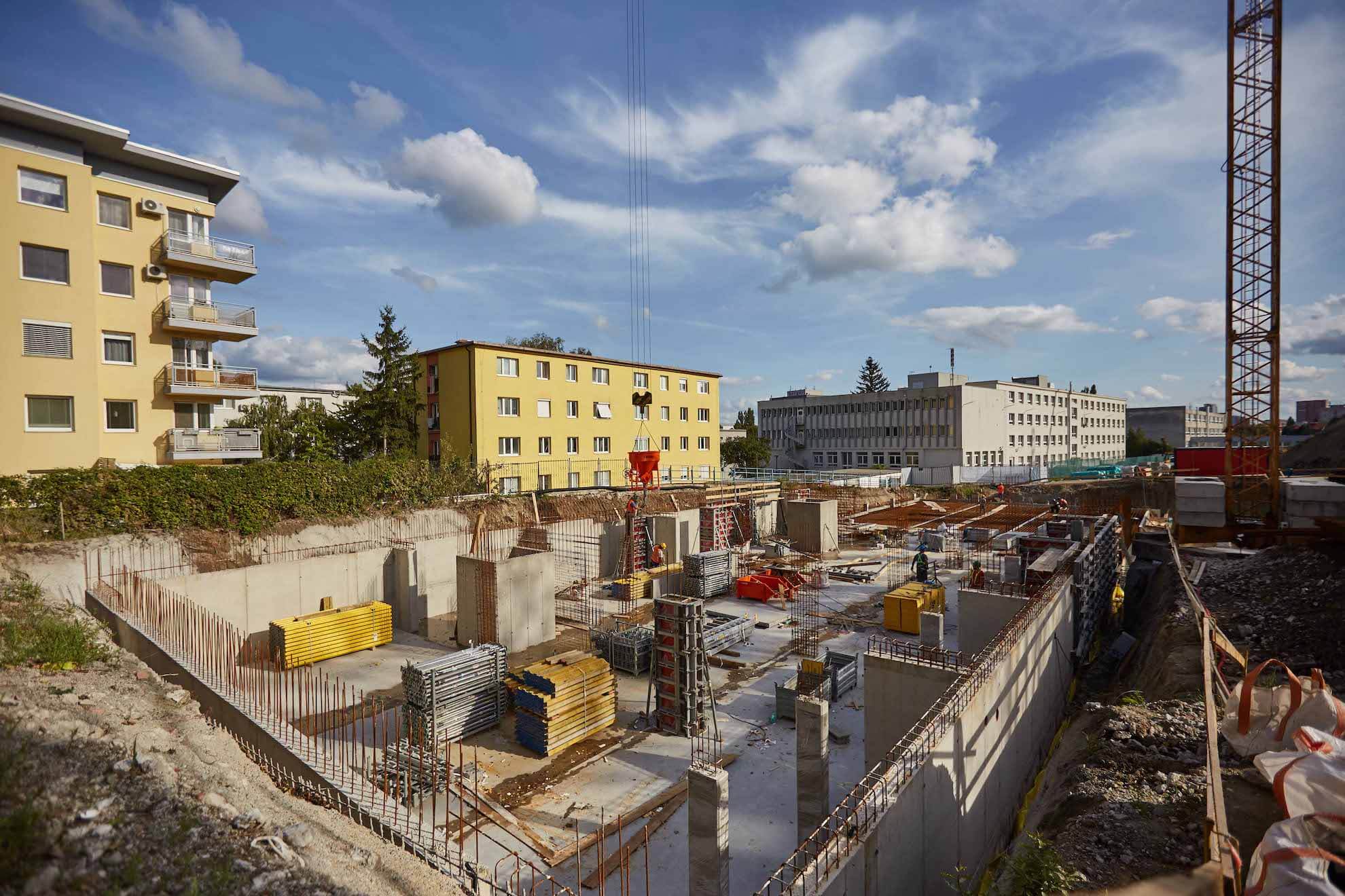 Na výstavbe Pod Vinicou pracuje generálny zhotoviteľ stavby, slovenská stavebná firma Hornex, ktorá viackrát získala cenu Stavebná firma roka. Medzi ich zrealizovanými stavbami nájdeme projekty ocenené v súťaži Stavba roka a mnohé známe stavebné diela. Ako za zhotoviteľa povedal manažér stavby Ing. Marek Jedinák: “Výkopové práce úspešne napredujú a momentálne prebieha zakladanie stavby - betonáž základových dosiek a izolácia stavby voči vode a vlhkosti. Už čoskoro začnú na základových doskách vyrastať stavebné prvky, postupne formujúce budúci tvar budov.” Podľa harmonogramu stavebných prác by mala byť hrubá stavba dokončená v roku 2020. Predbežný termín kolaudácie projektu je v závere roka 2021.